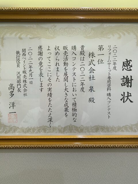 その中でも弊社は発足から加盟し、近畿県内全域で、8年連続 地域圧倒的な施工実績1位とゆう称号もご依頼頂いております。