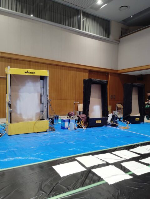 本日はワグナー吹き付け作業による実技 実演などを弊社スタッフが行いました。